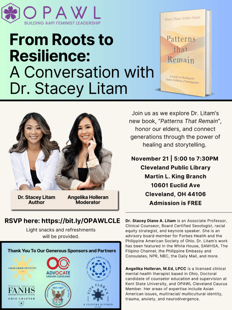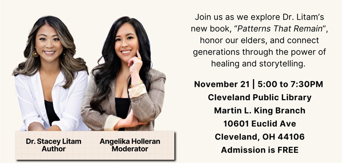 Join us for From Roots to Resilience: A Conversation with Dr. Stacey Litam on Friday, November 21st, from 5 to 7:30 p.m. at the Cleveland Public Library.